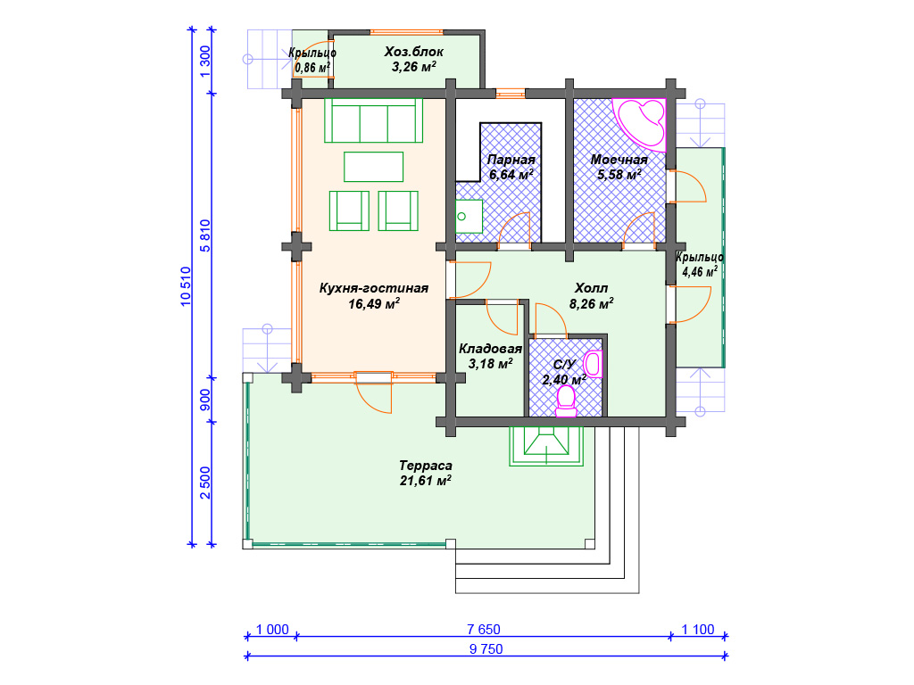 | Материал стен | оцилиндрованное бревно, профилированный брус, клееный брус |