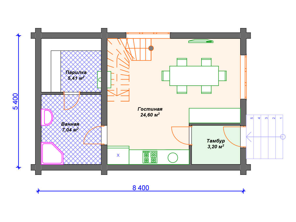 Проект деревянной бани SB4-78 (Б-077)