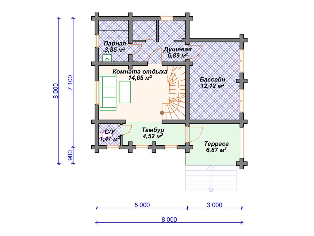 Проект деревянной бани SB4-83 (Б-079)