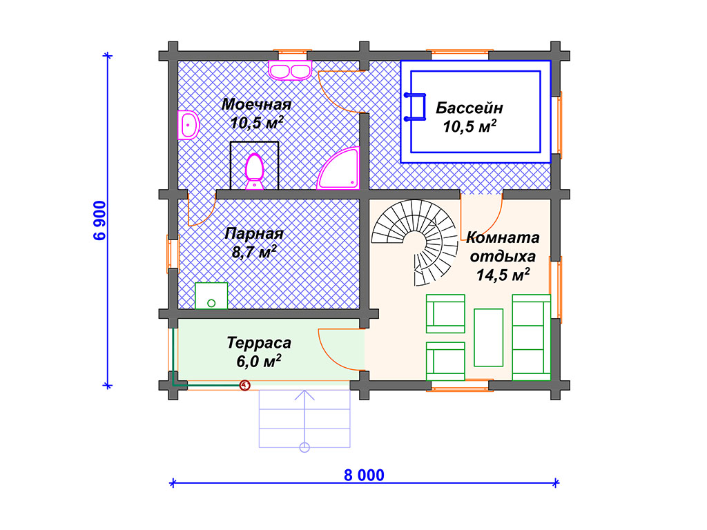 Проект деревянной бани с бассейном SB4-86 (Б-002)