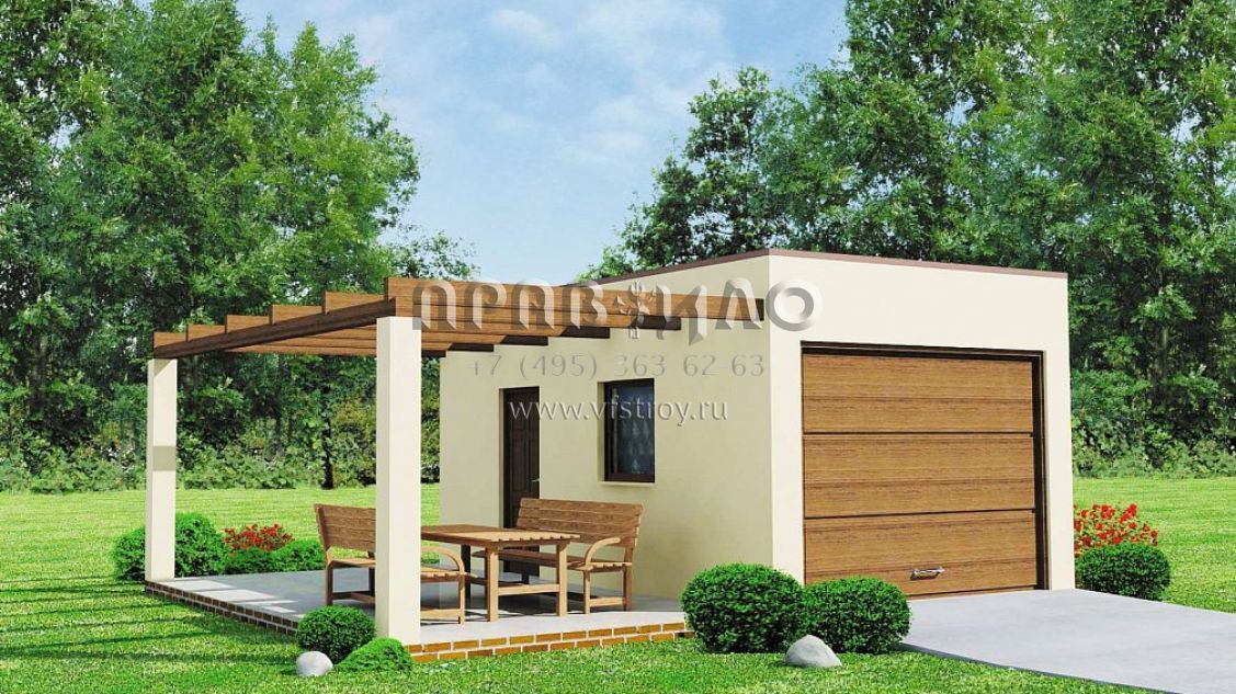 Проект одноместного гаража с летней террасой SG3-19 (Zg13)