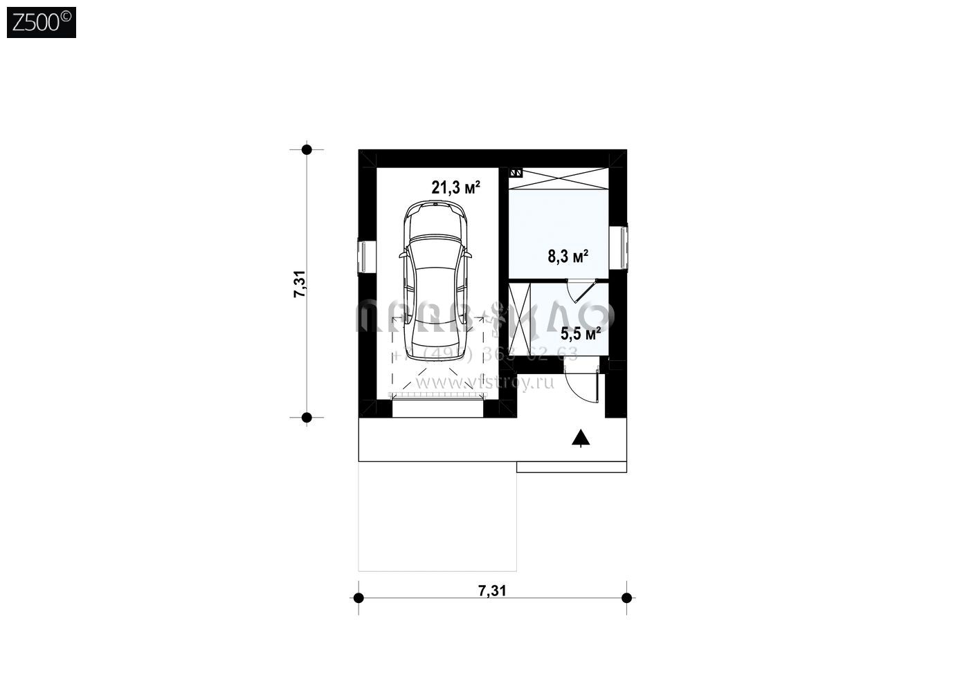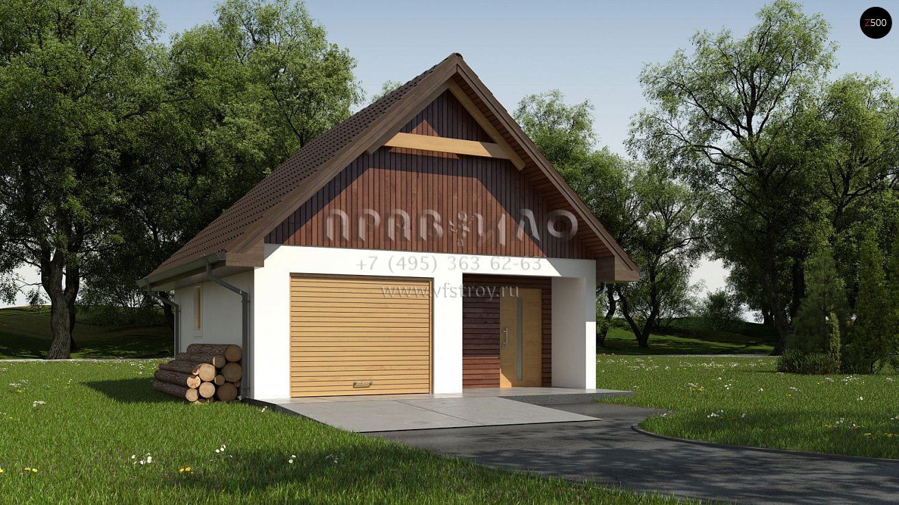 Проект одноместного гаража с подсобными помещениями SG3-36-1 (Zg2)