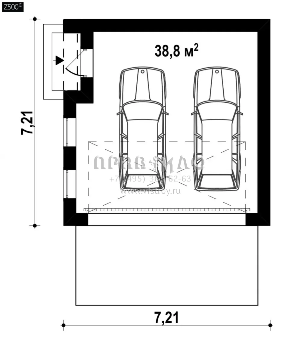 Проект современного гаража на два парковочных места SG3-42 (Zg15)