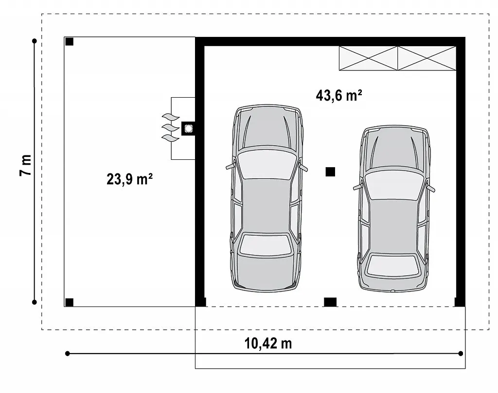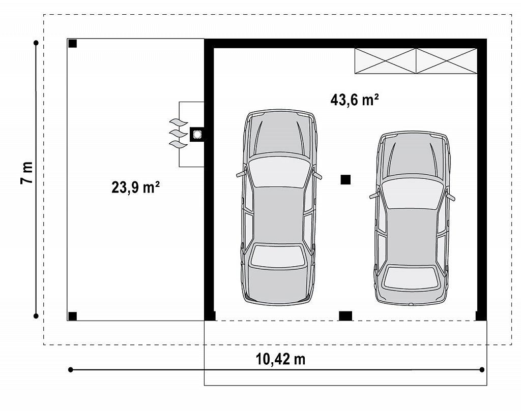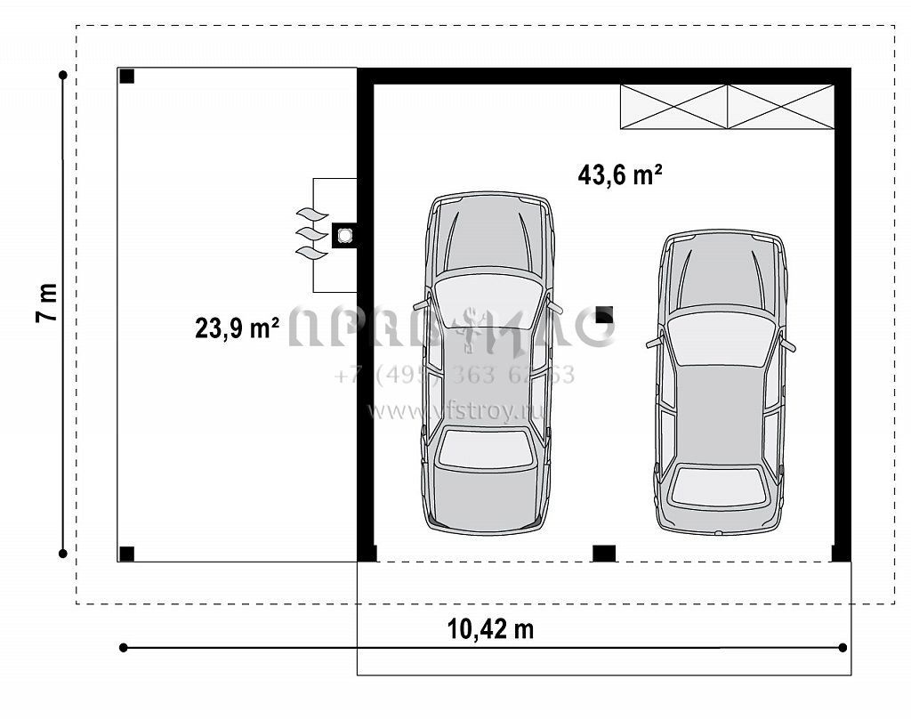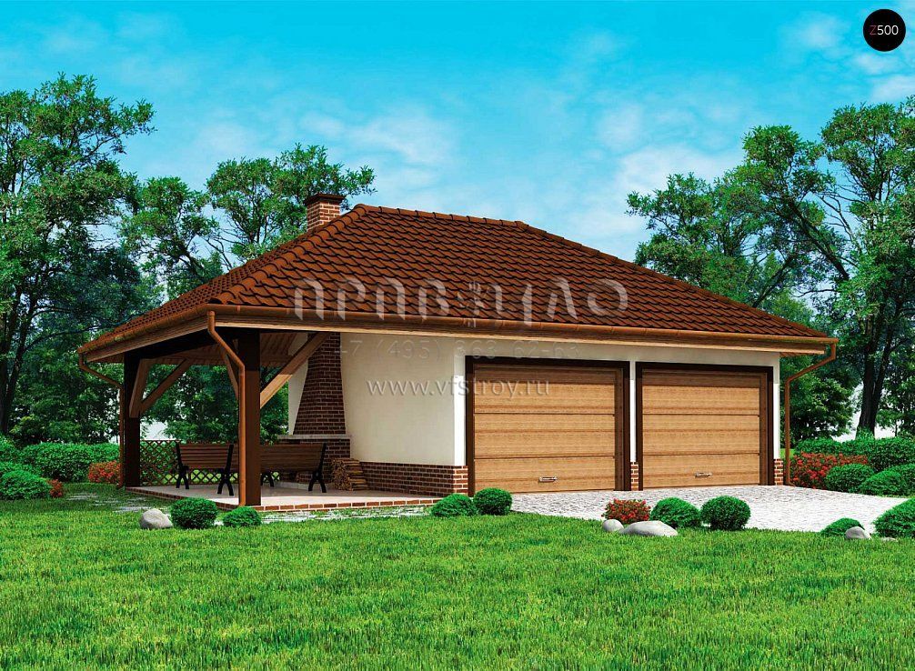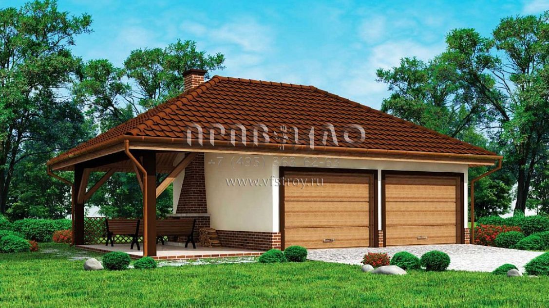 Проект красивого двухместного гаража с боковой террасой с уличным камином SG3-43 (Zg24)