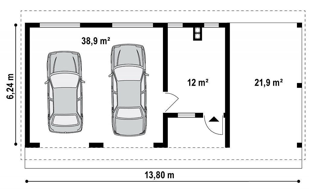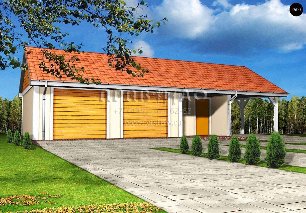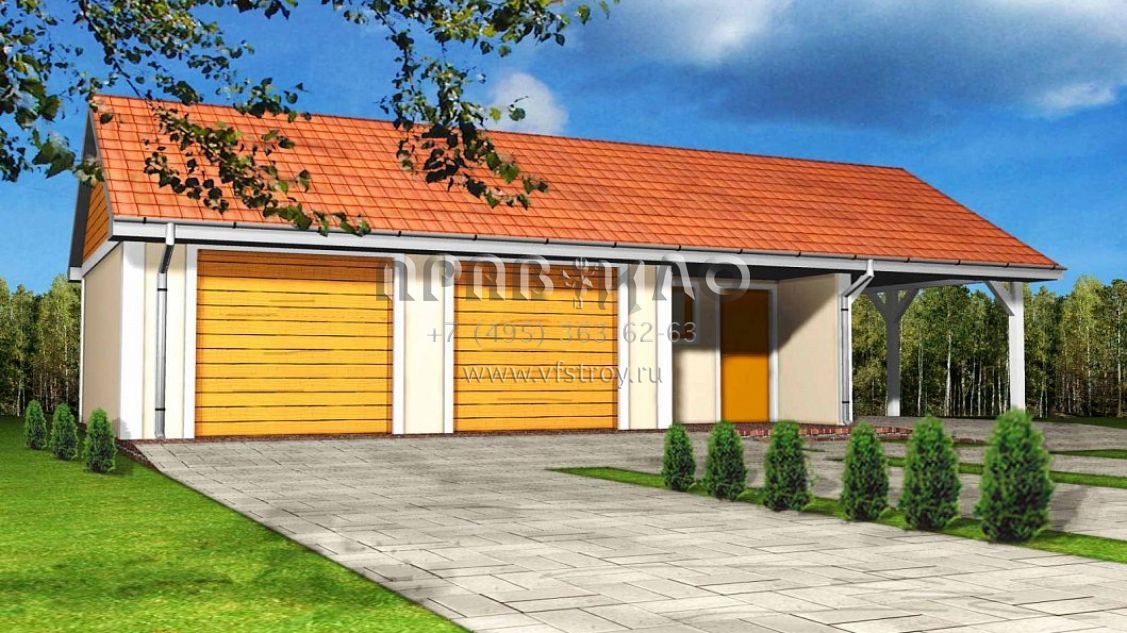 Проект двухместного гаража с мастерской и крытой террасой SG3-51 (Zg4)