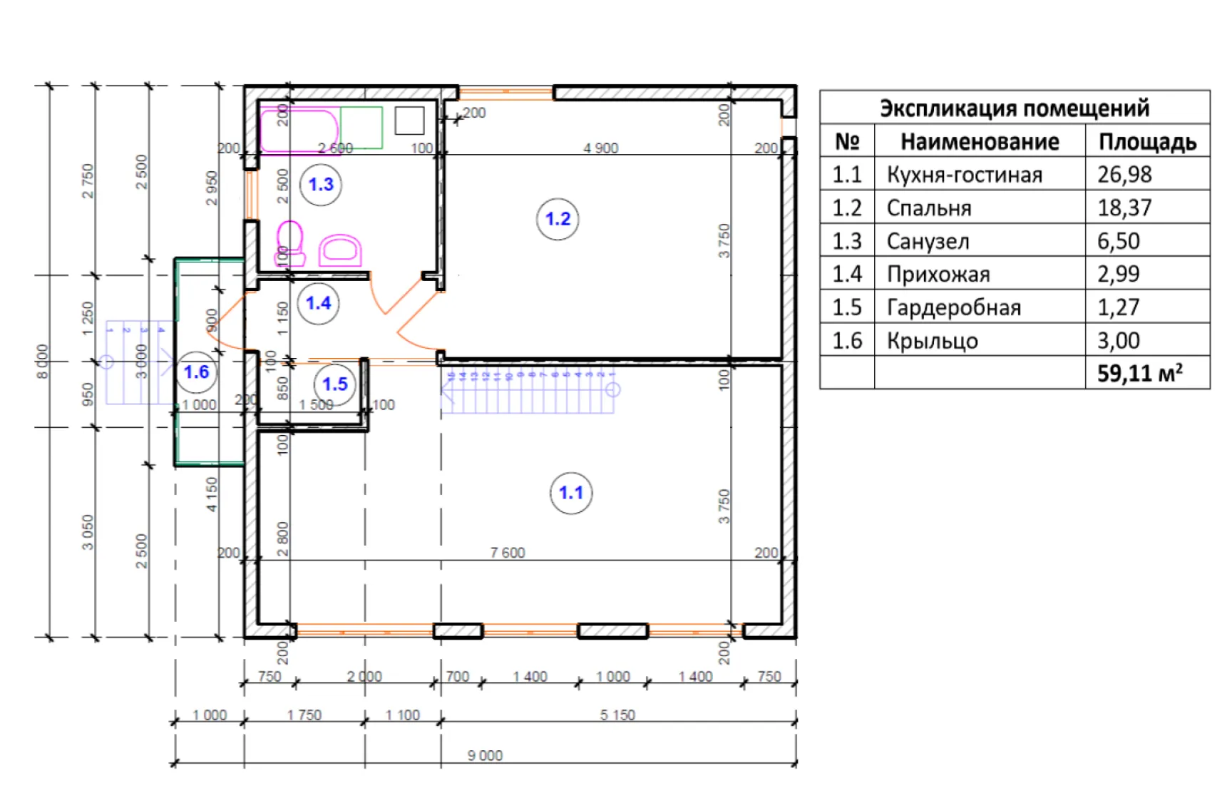 Проект каркасного дома для двух человек SK-56