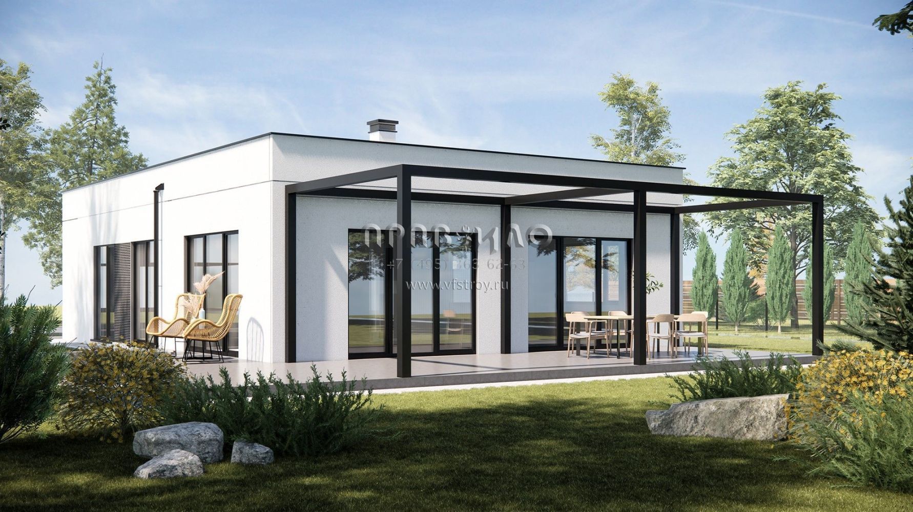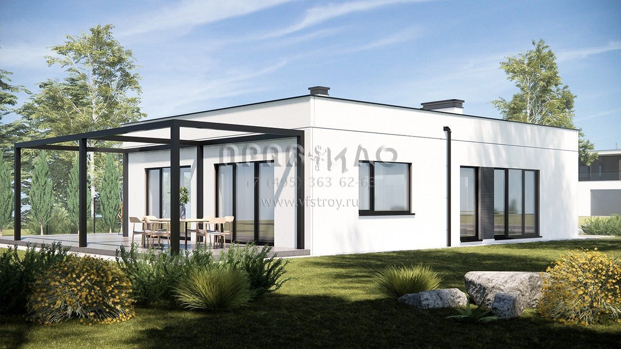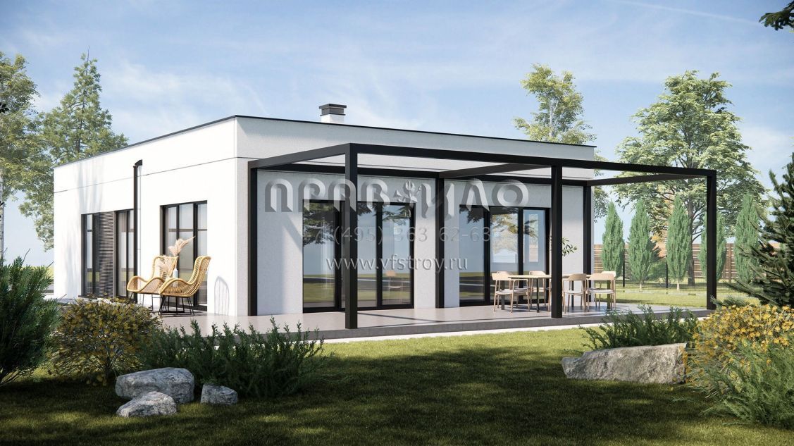 Проект дома из ж/б панелей с плоской кровлей SP-119
