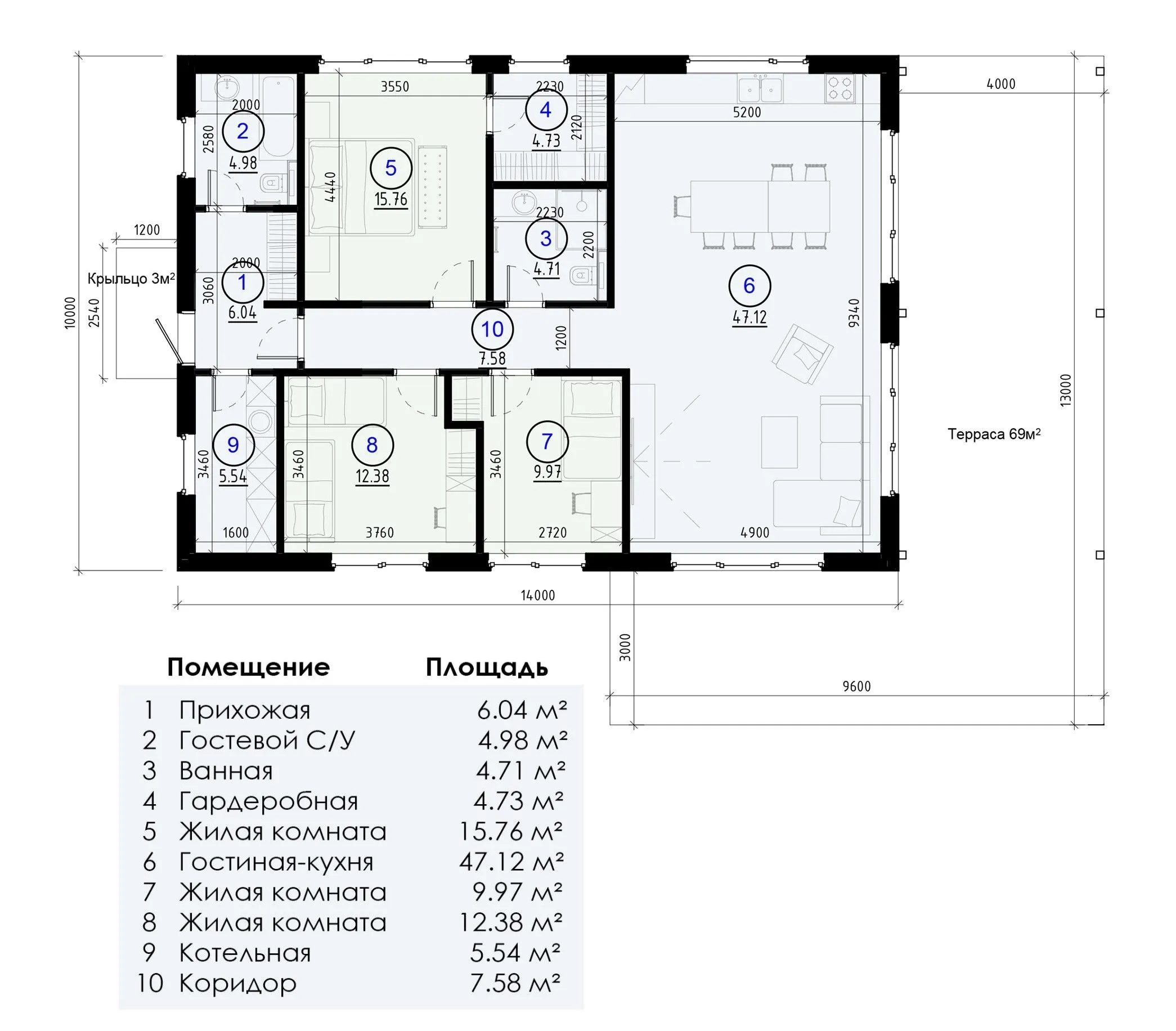 | Количество жилых комнат | 4 |