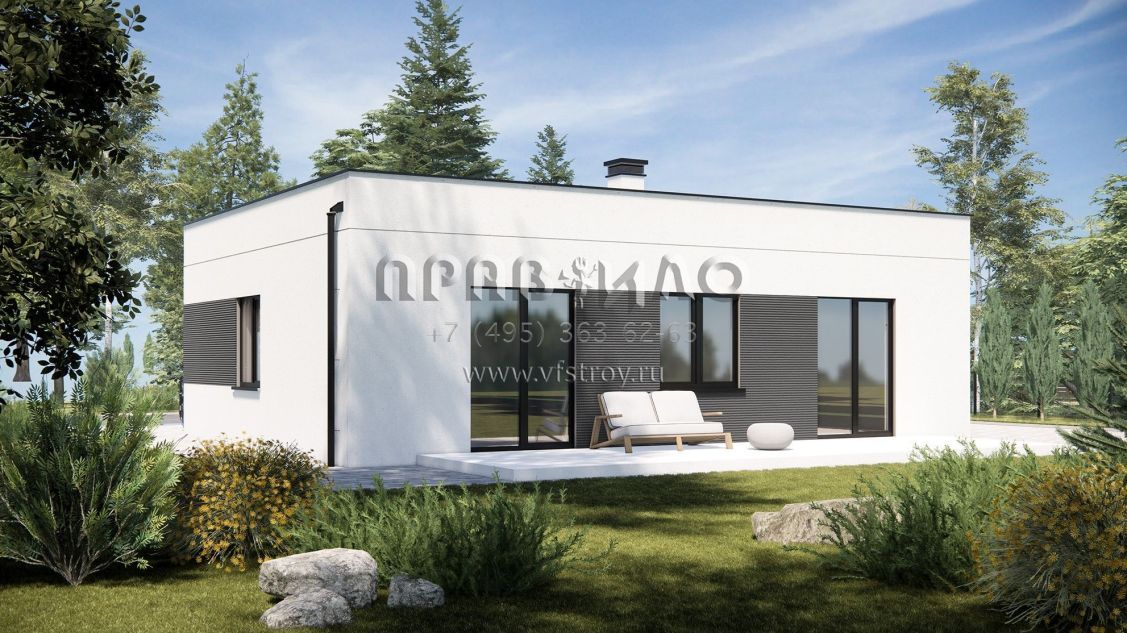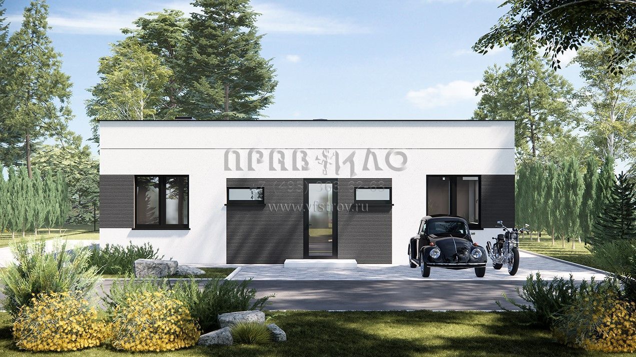 Проект минималистичного дома из ж/б панелей с 3 спальнями SP-89