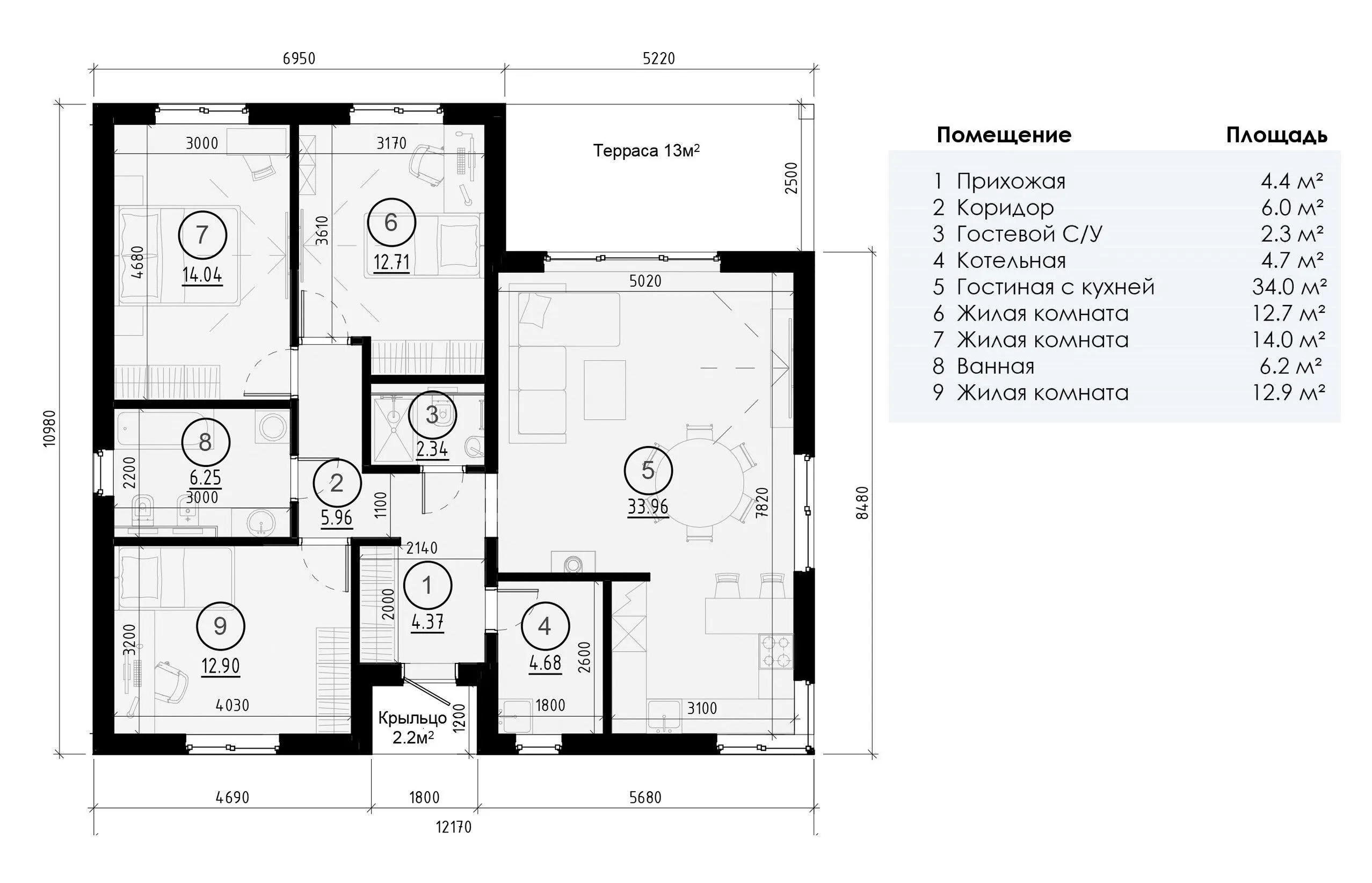 Проект дома из ж/б панелей с плоской кровлей SP-97-1