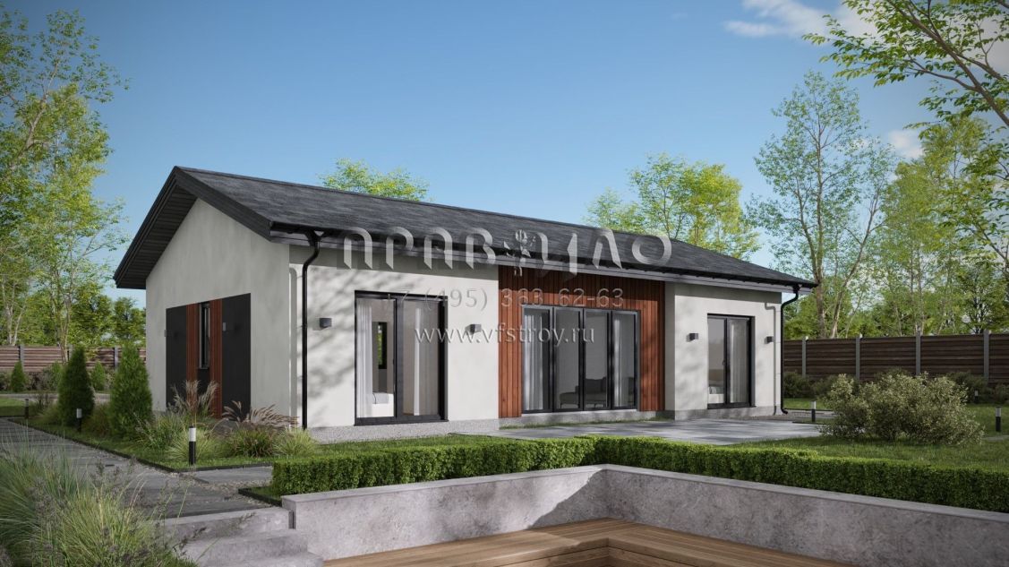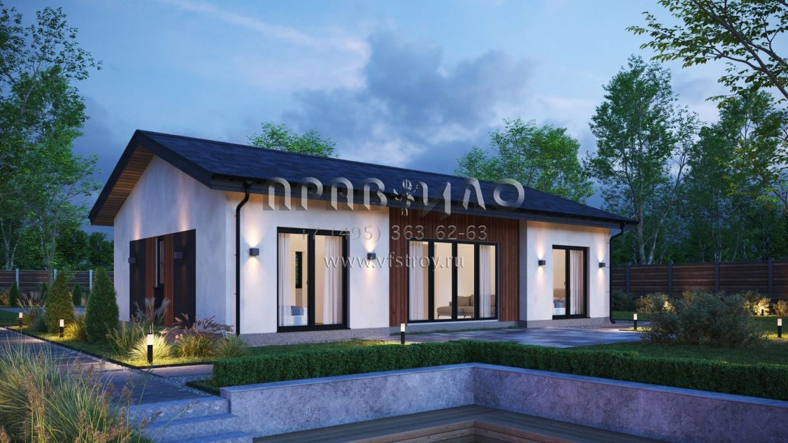 Проект одноэтажного дома из двухслойных ж/б панелей SP2-100-1 (1А-100-1СК)