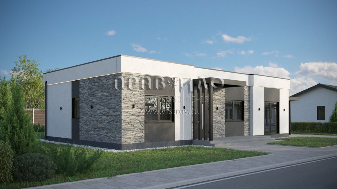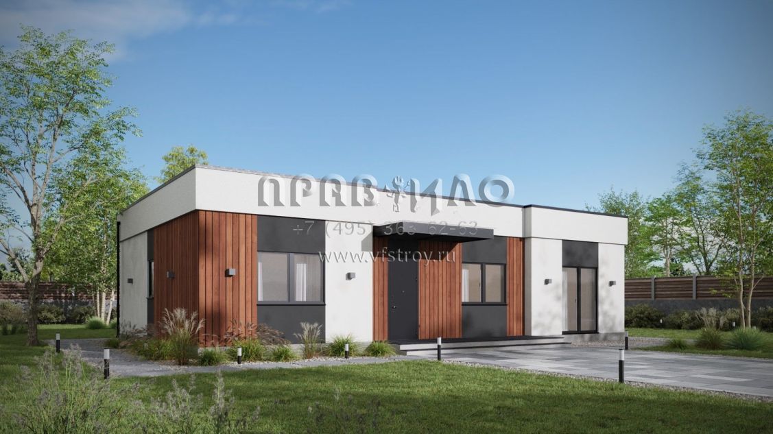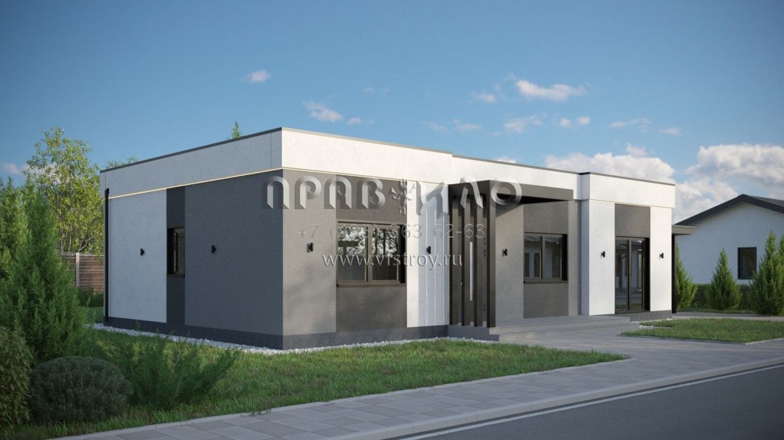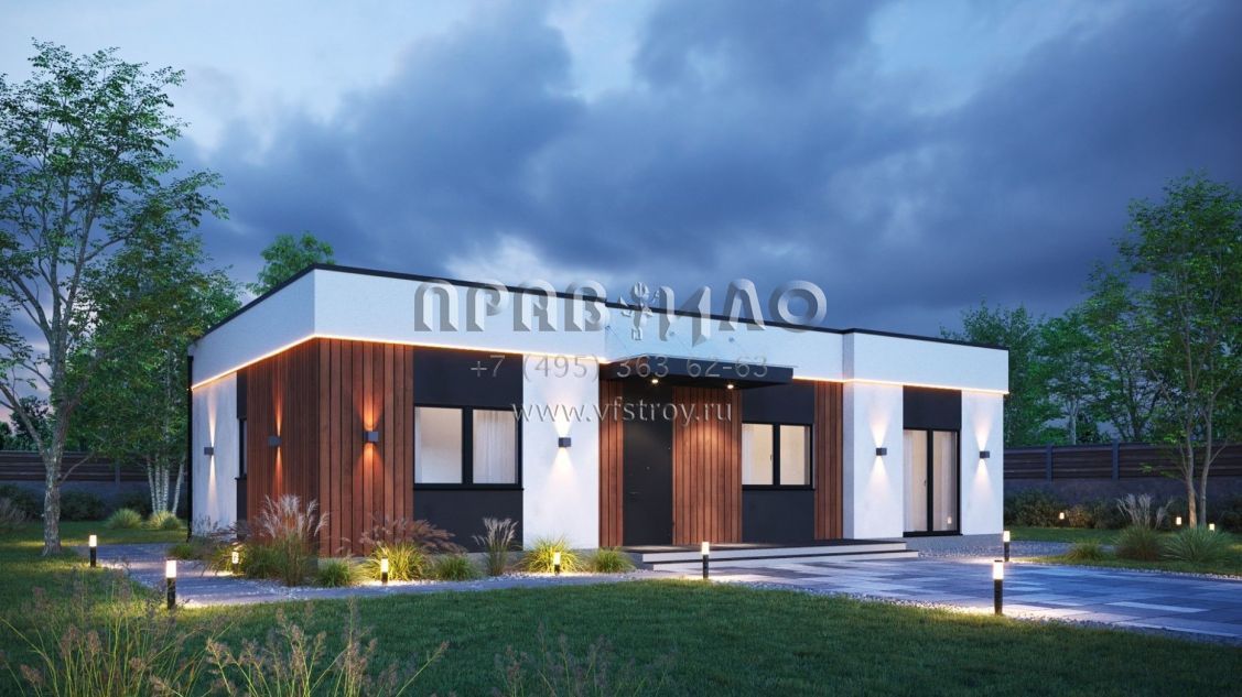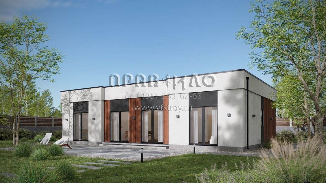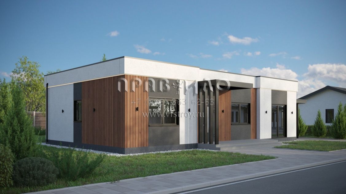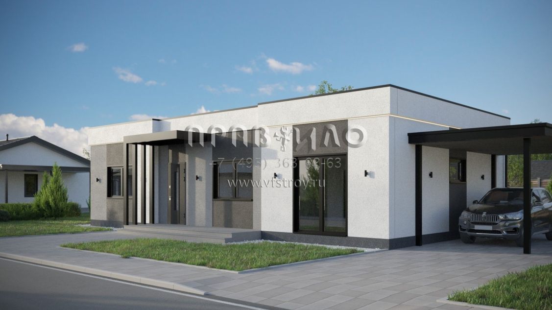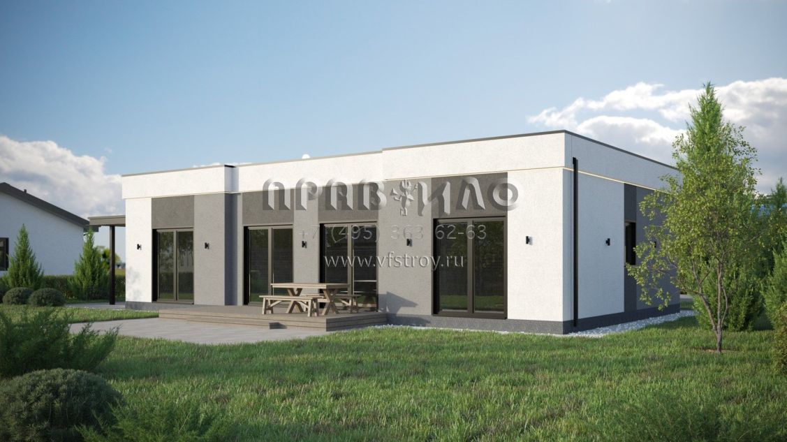 Проект дома из двухслойных ж/б панелей с плоской кровлей SP2-120-1 (1А-120-1ПК)