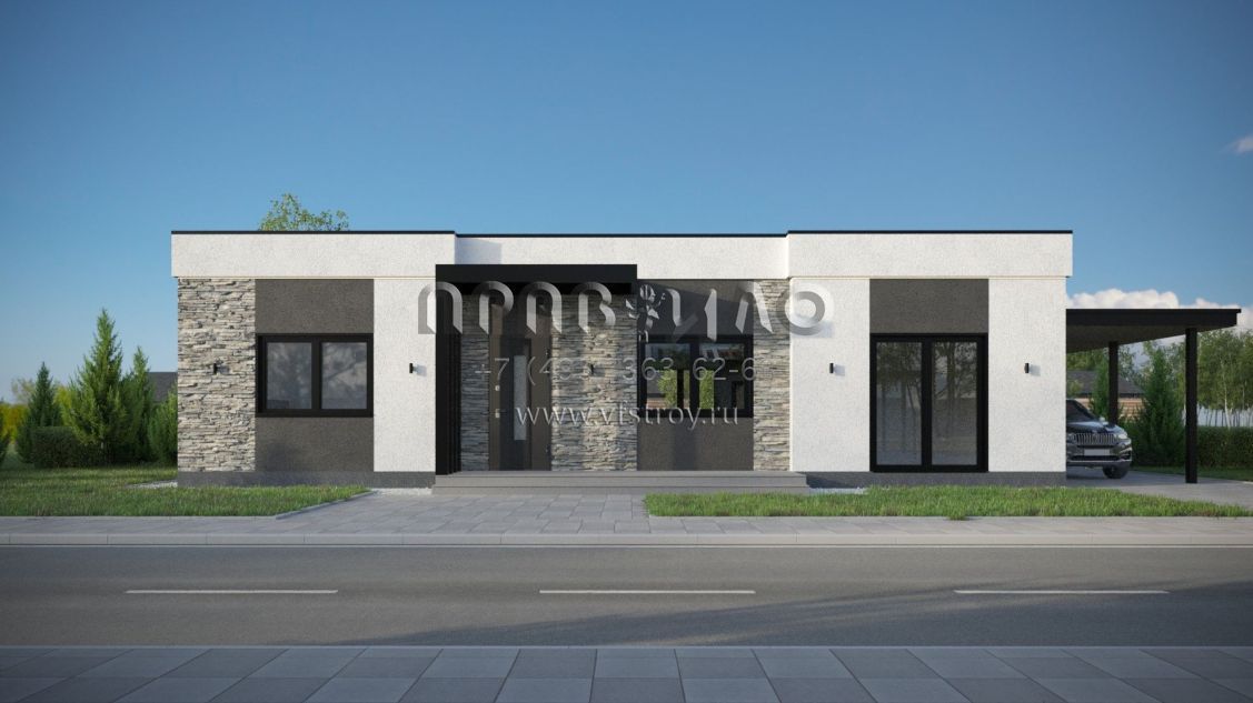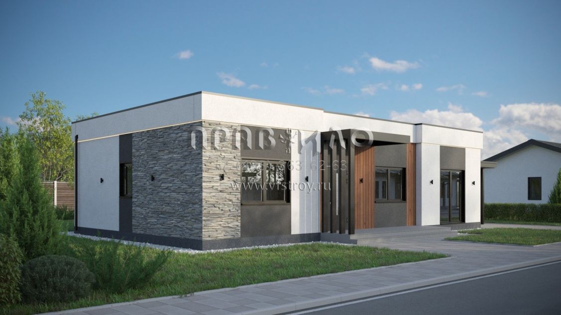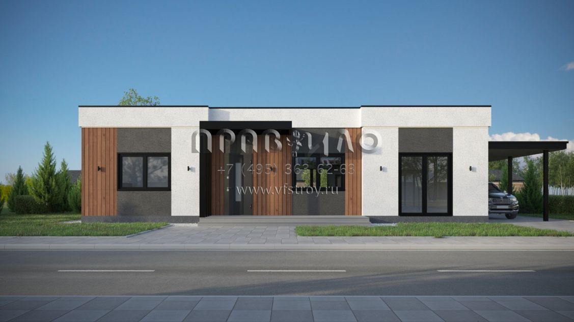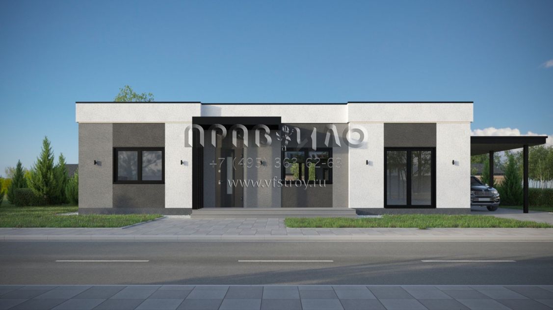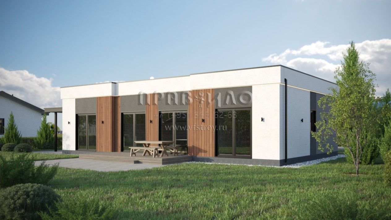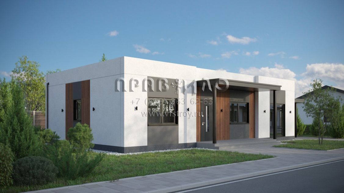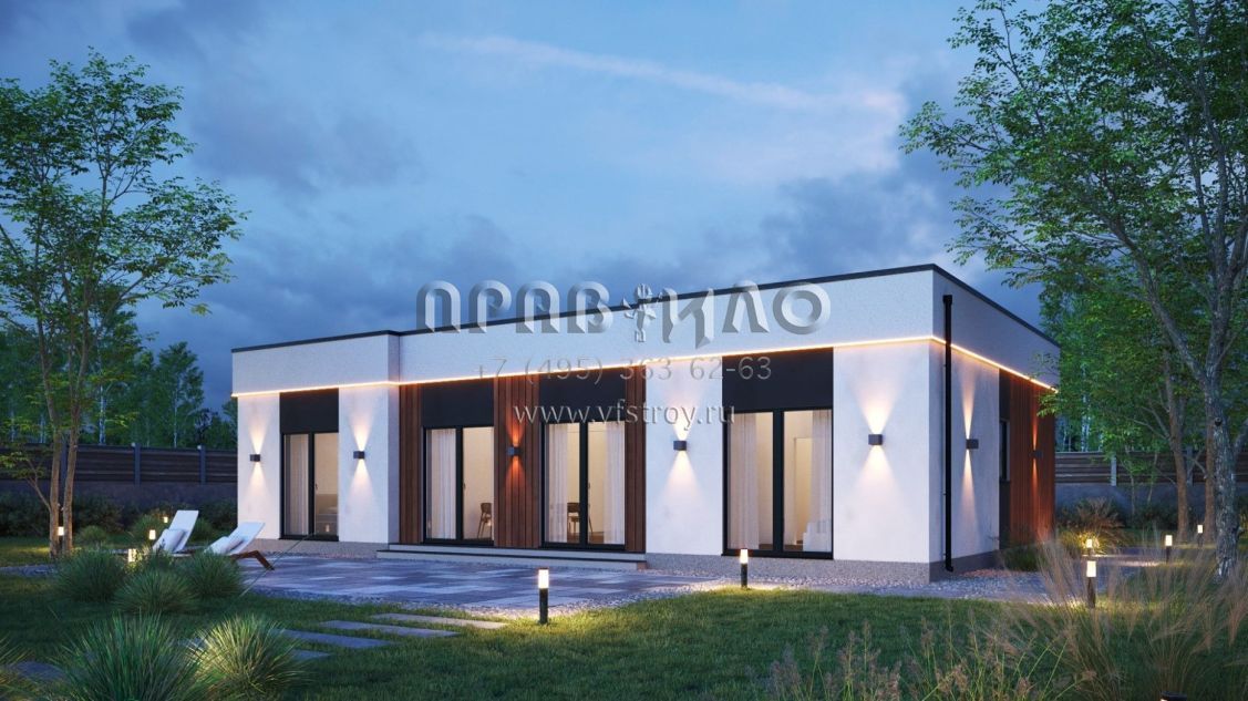 Проект дома из двухслойных ж/б панелей с плоской кровлей SP2-120-1 (1А-120-1ПК)