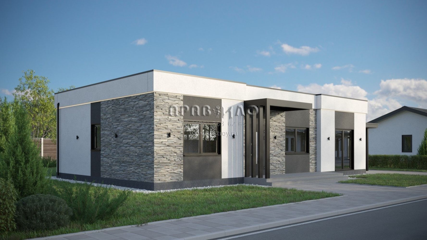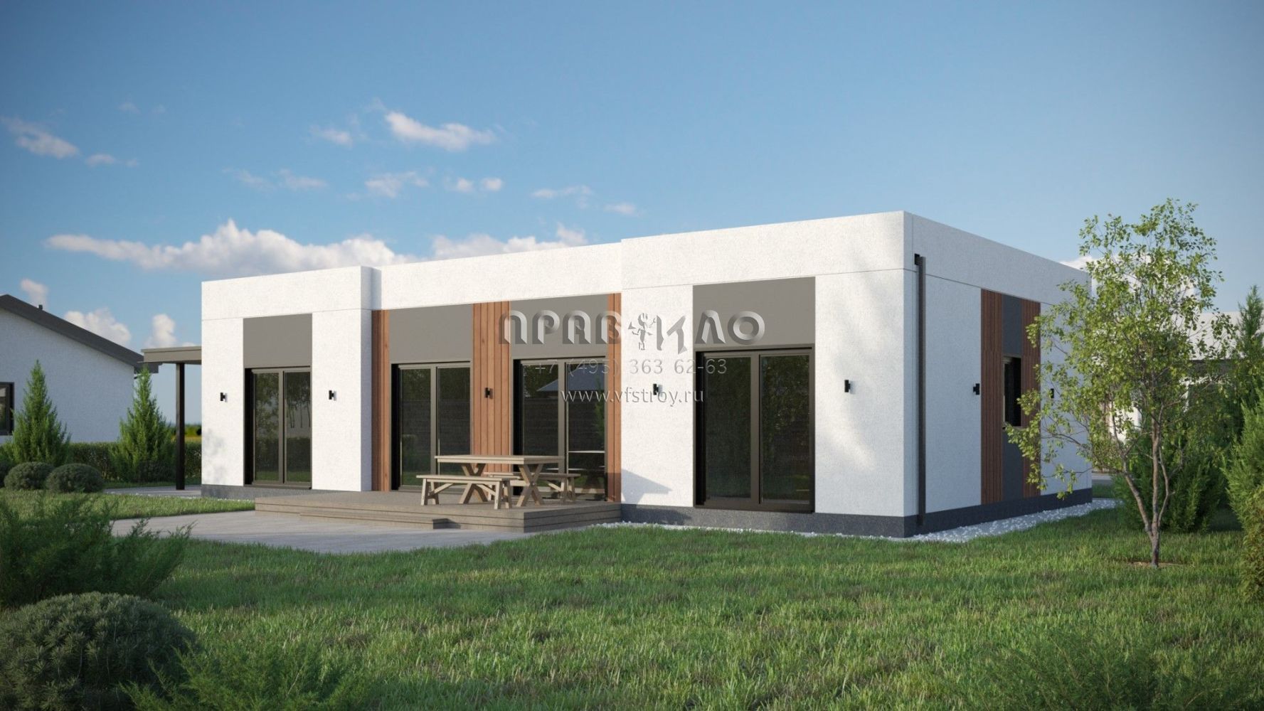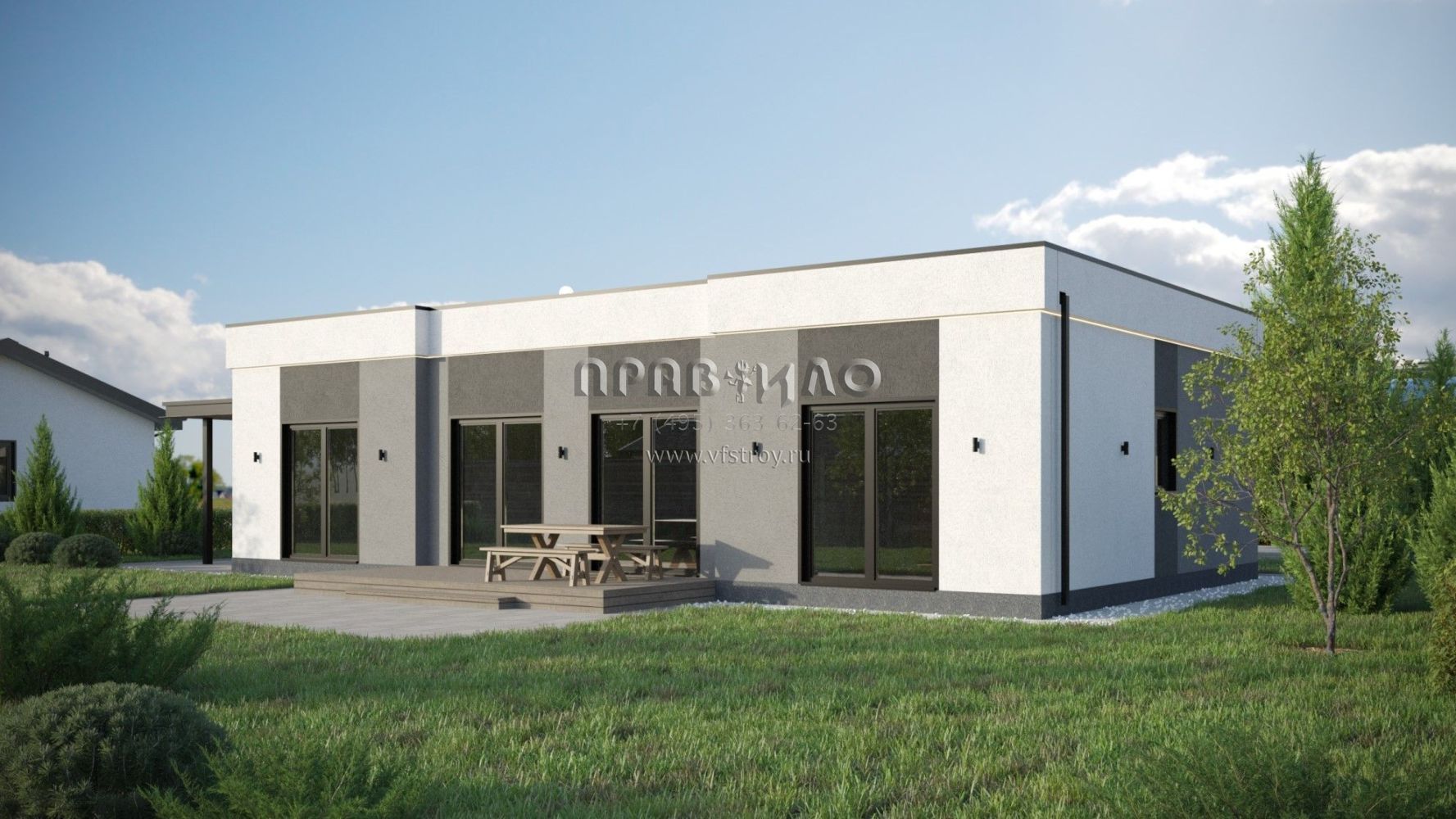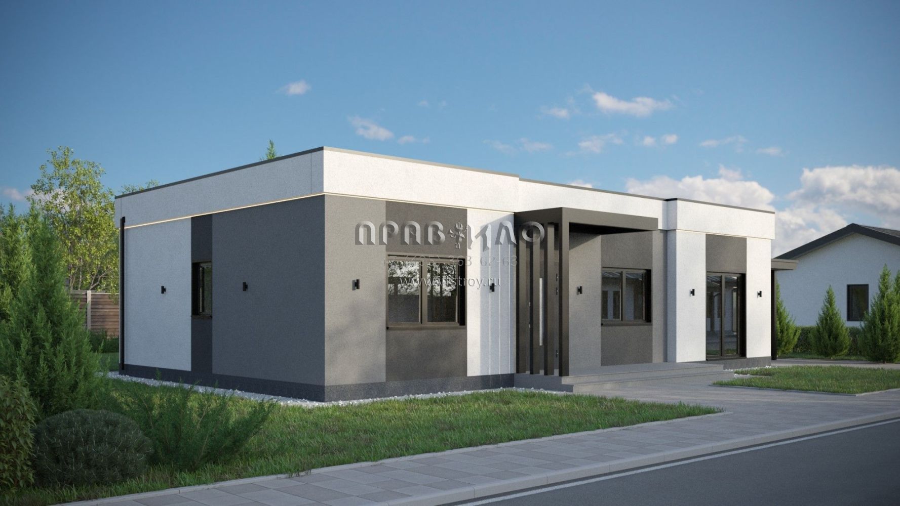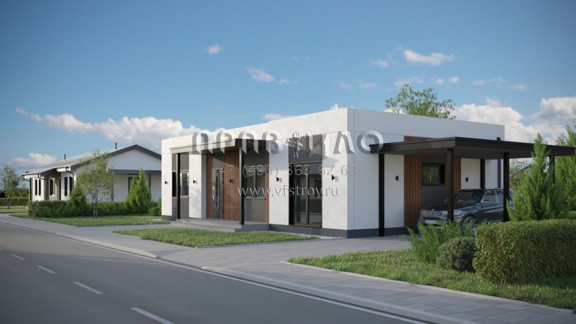 Проект дома из двухслойных ж/б панелей с плоской кровлей SP2-120-1 (1А-120-1ПК)