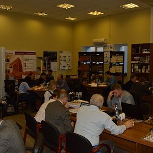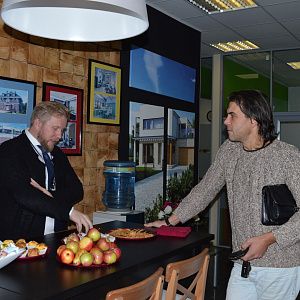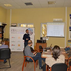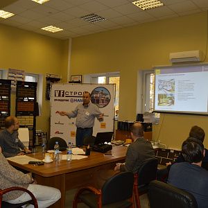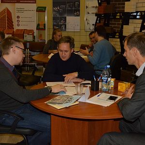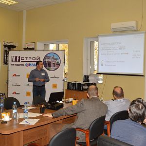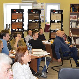 Гости мероприятия собрались в назначенное время 21 октября в 12.00 в офисе нашей компании. Мероприятие было реализовано в зале, который одновременно является нашим шоу-румом, а так же переговорной, поэтому у гостей была возможность не только услышать важную информацию, но и увидеть основные строительные материалы.