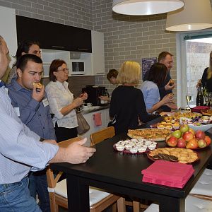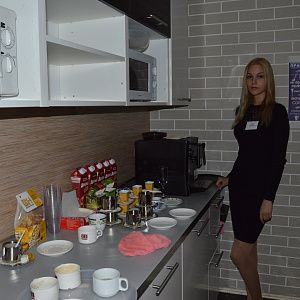 Мы позаботились о том, чтобы гости чувствовали себя уютно, для кофе-брейков был организован фуршетный стол, который расположился на нашей действующей красивой кухне.