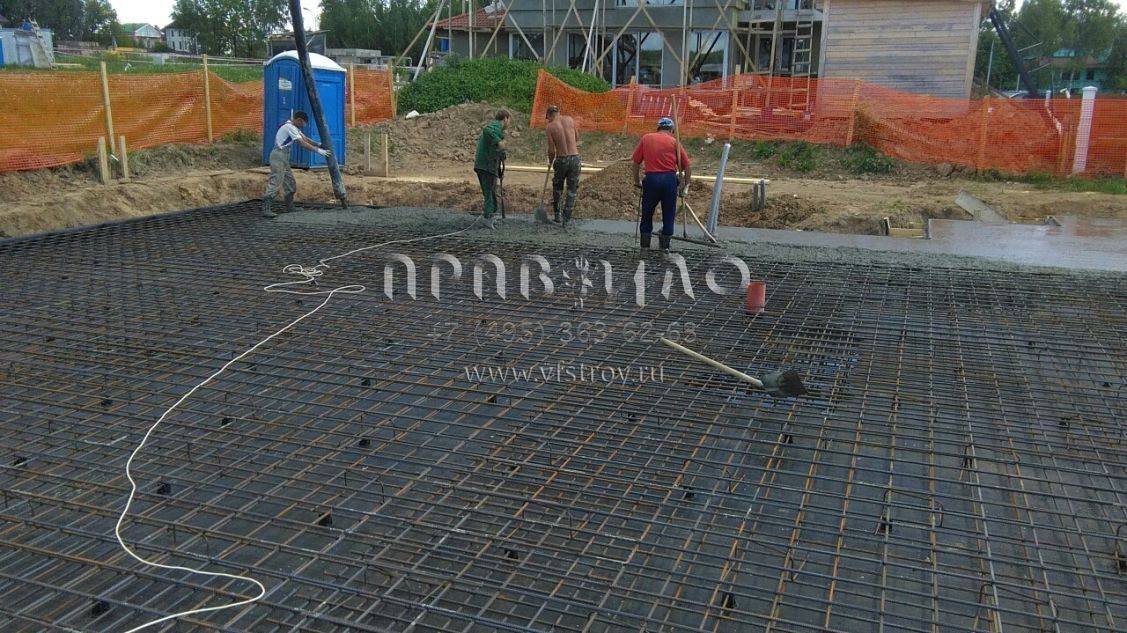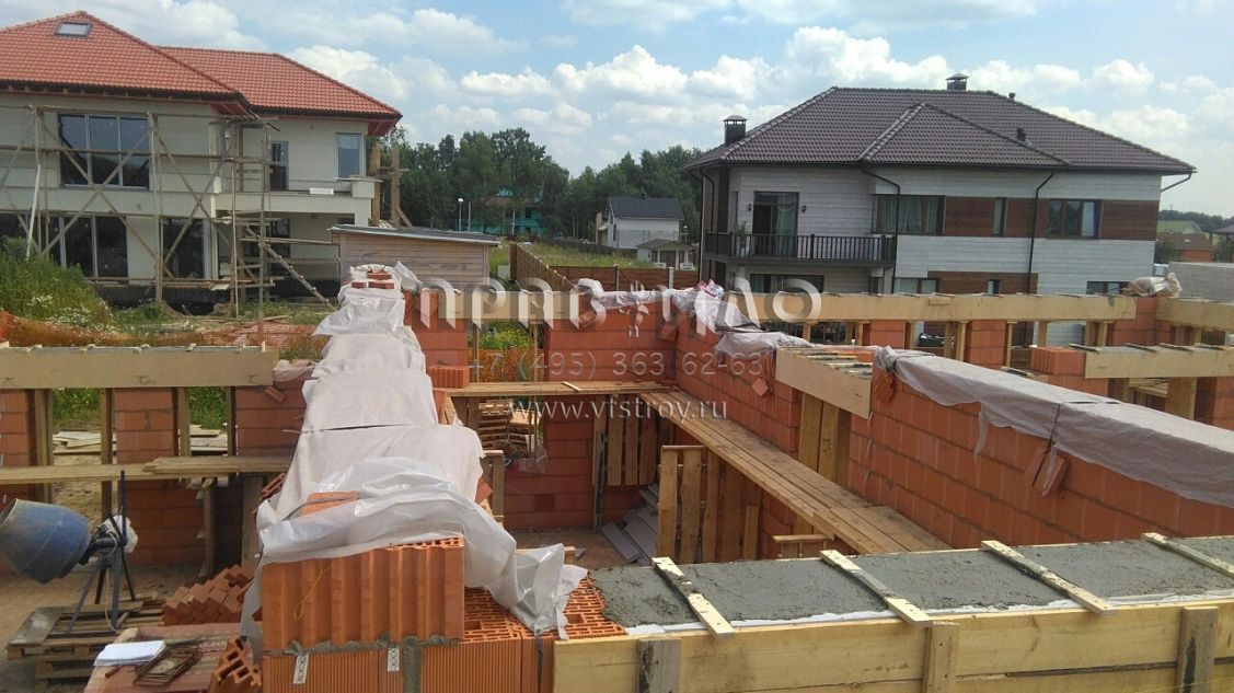 Строительство дома в Мытищинском районе, севернее деревни Сёмкино проводится ВФ-строем. Проект двухэтажного дома с гаражом на 2 машины. На первом этаже расположены кухня-столовая, гостиная, хозяйственные помещения и веранда, откуда есть выход на улицу. Второй этаж занимают санузел и спальные комнаты.