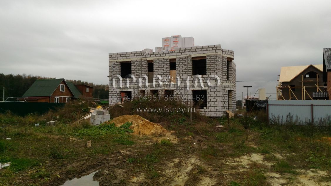 Строительство дома в Ленинском районе Московской области ведется по адресу Каширское шоссе, коттеджный поселок «Ирининское Лайф». Проект двухэтажного дома с большой мансардой. На первом этаже расположены просторная столовая-гостиная, кухня и хозяйственные помещения.
