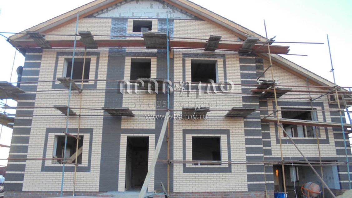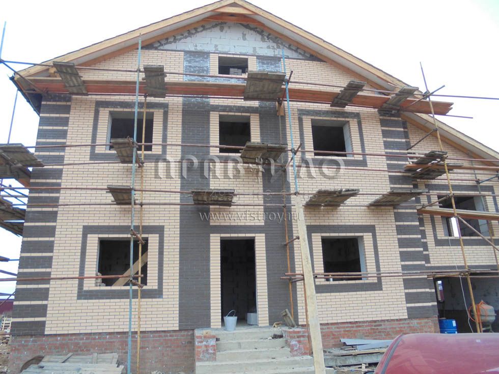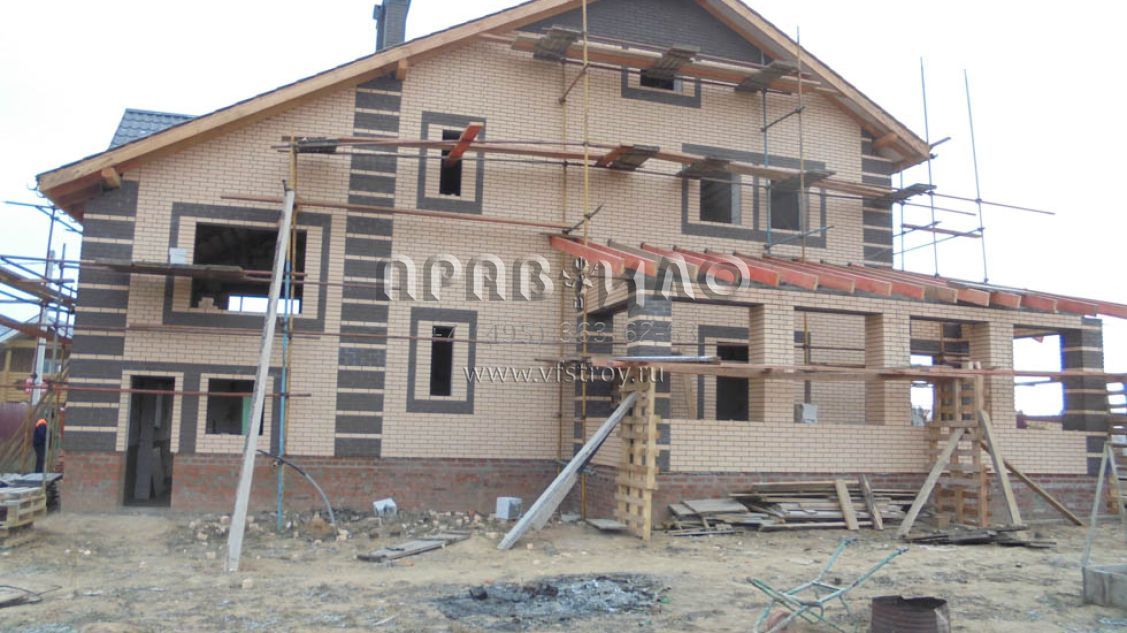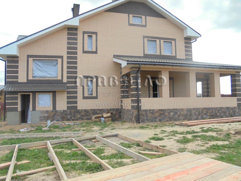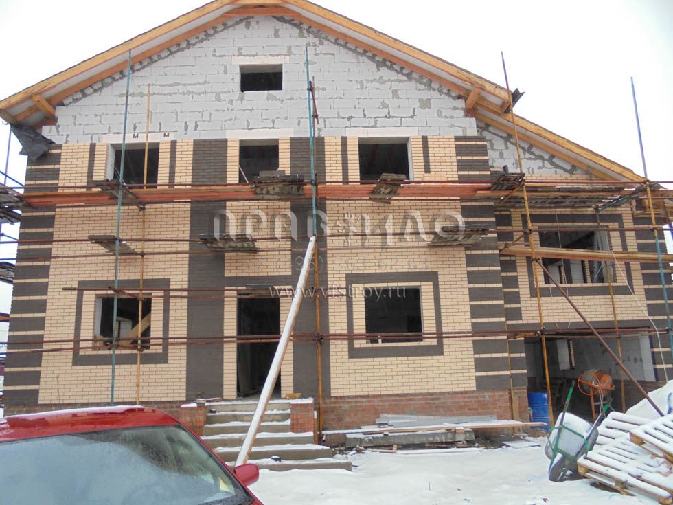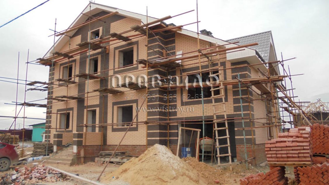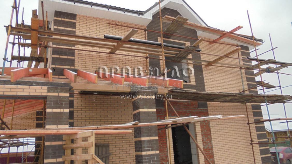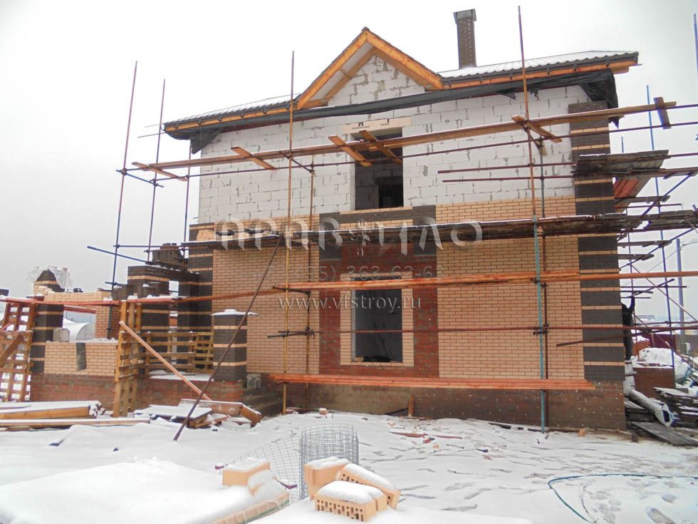 Строительство ведется в Чеховском районе, вблизи д. Ходаево. Небольшой коттедж предназначен для комфортного проживания семьи из 3 - 4 человек. Простота архитектурных очертаний дополняется рустовкой из кирпича и другими декоративными элементами, что создает неповторимый облик здания. Характерной чертой главного фасада является ярко выраженная входная зона с тер-расой, украшенной решеткой. Планировка отличается простотой и удобством. Первый этаж предназначен для дневного пребывания. Наличие спальной комнаты и санитарных удобств на первом этаже позволяет разместиться семье, состоящей из разных возрастных групп. Второй этаж полностью выделен под личные апартаменты, предназначенные для отдыха и сна, со всеми необходимыми удобствами. Особо следует отметить интересное расположение игровой комнаты с оранжереей, находящейся в уровне между первым и вторым этажом.