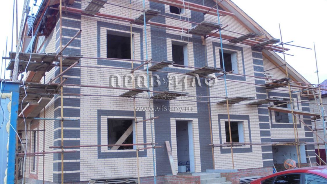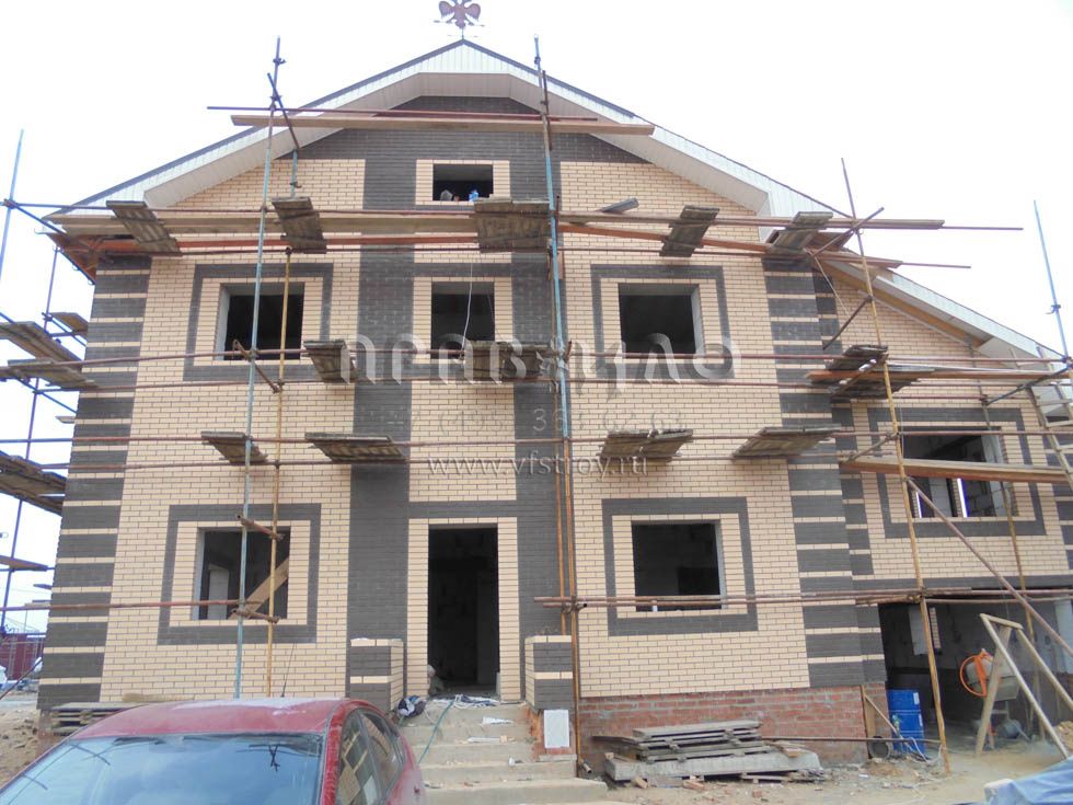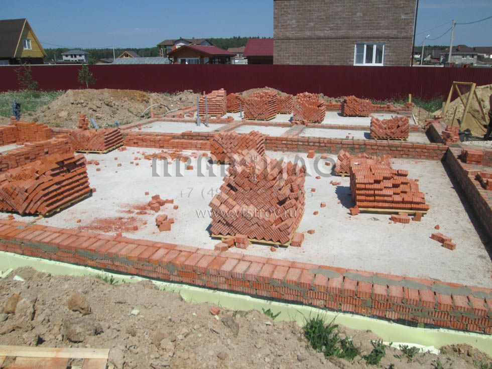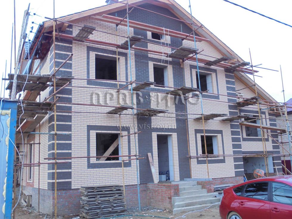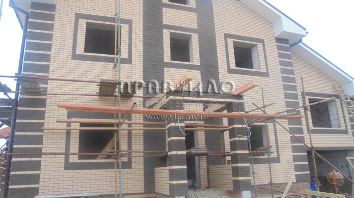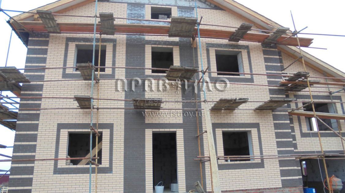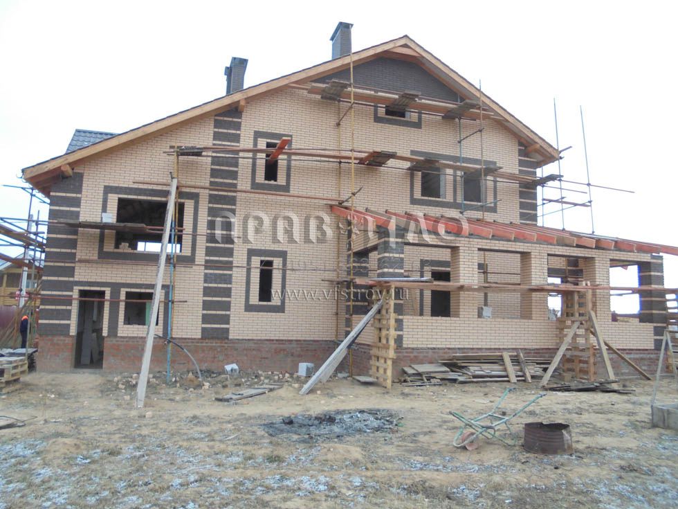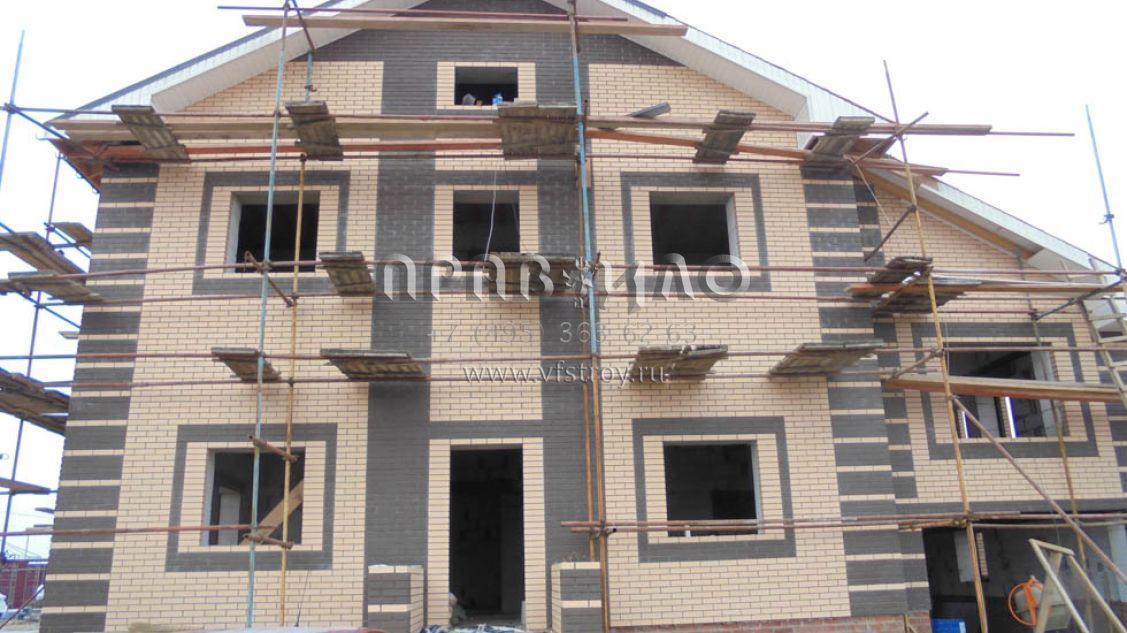 Строительство ведется в Чеховском районе, вблизи д. Ходаево. Небольшой коттедж предназначен для комфортного проживания семьи из 3 - 4 человек. Простота архитектурных очертаний дополняется рустовкой из кирпича и другими декоративными элементами, что создает неповторимый облик здания. Характерной чертой главного фасада является ярко выраженная входная зона с тер-расой, украшенной решеткой. Планировка отличается простотой и удобством. Первый этаж предназначен для дневного пребывания. Наличие спальной комнаты и санитарных удобств на первом этаже позволяет разместиться семье, состоящей из разных возрастных групп. Второй этаж полностью выделен под личные апартаменты, предназначенные для отдыха и сна, со всеми необходимыми удобствами. Особо следует отметить интересное расположение игровой комнаты с оранжереей, находящейся в уровне между первым и вторым этажом.