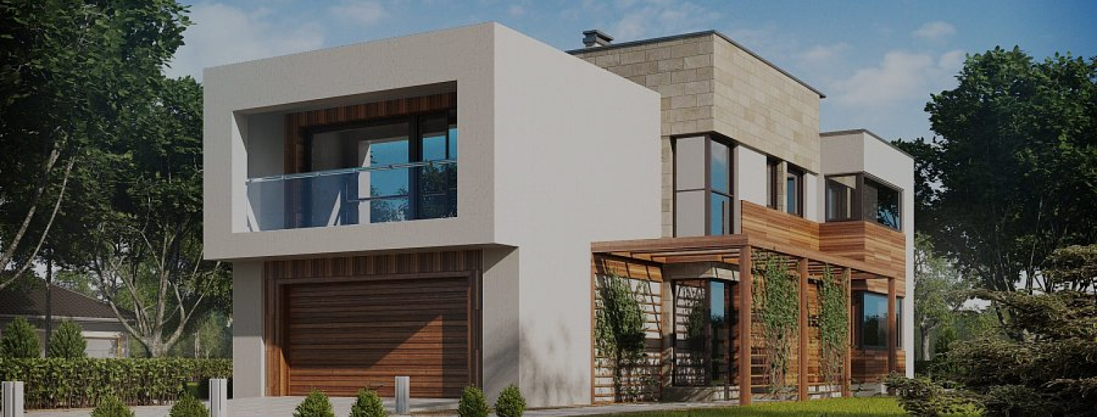 Строительство дома с плоской кровлей и пристроенным гаражом S3-131-1 (Zx63 A), Юннат