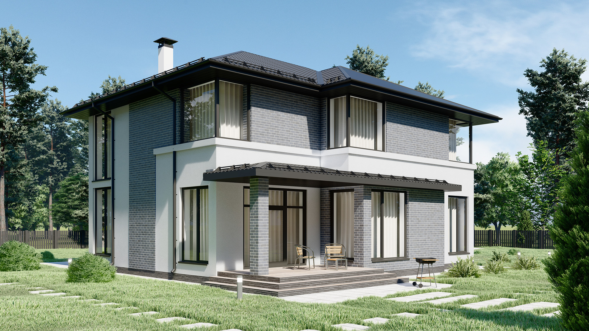 Строительство небольшого дома с террасой над гаражом S-137, Степаньково