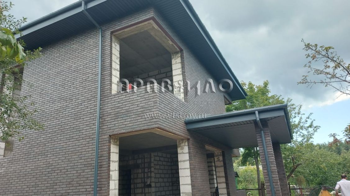 Все планировки были сделаны с учетом индивидуальных потребностей заказчика. Но совершенствование своего дома — это процесс бесконечный, поэтому в процессе строительства заказчик решил внести изменения в проект и заменил отделку верхней части с планкена на облицовочный кирпич. В связи с этим пришлось оперативно закупать выбранный отделочный материал, решать вопрос чтобы у кирпича не было разного тона.