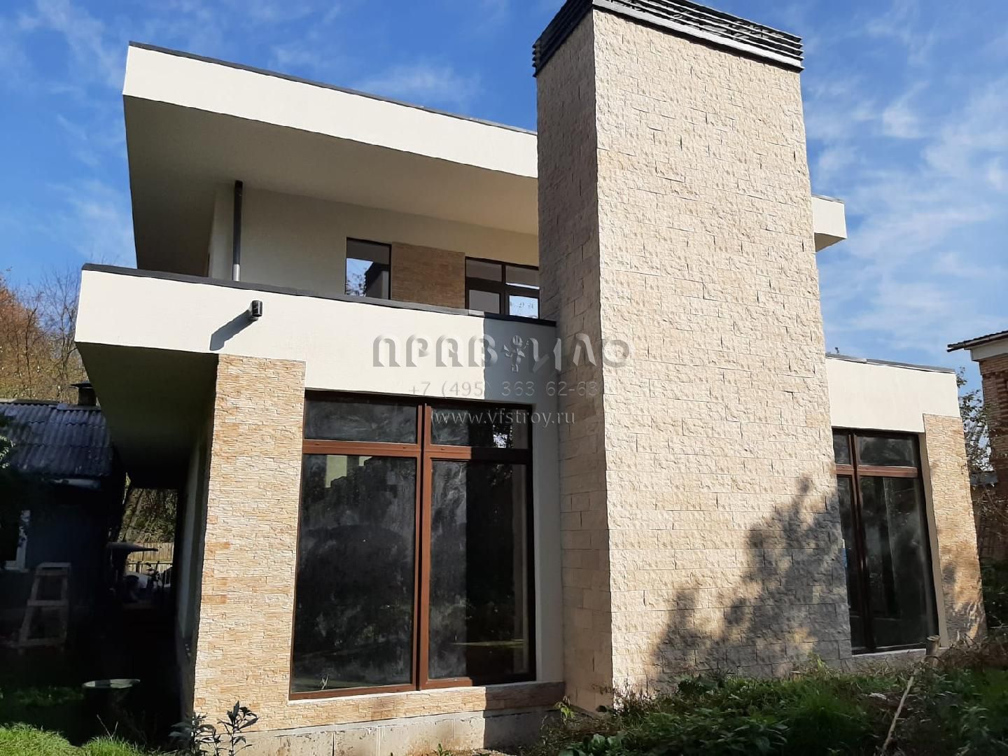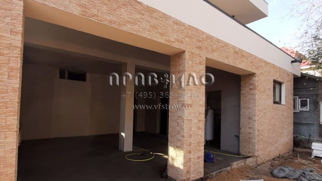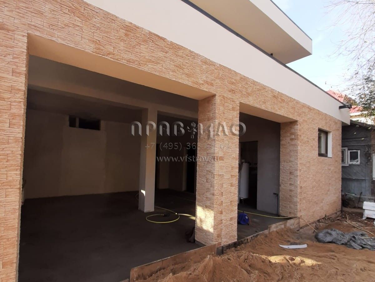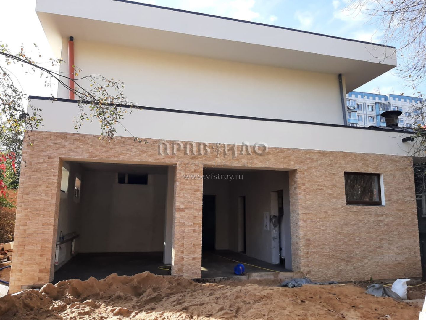 Строительство дома по проекту проводилось в стесненных обстоятельствах. С одной стороны забор в трех метрах, с другой – имеющееся строение в двух метрах. Более того, протяженность здания почти 20 метров, поэтому пришлось использовать спецтехнику с учетом данных размеров и ограничений. Но и конечно не обошлось без ручного труда, так как данные ограничения существенные и внутрь техника проезжать не могла.