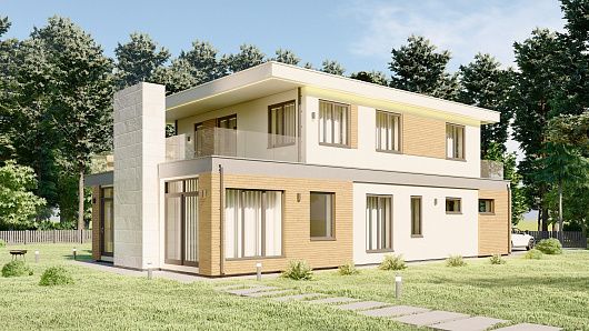 Данный проект является разновидностью проекта Zx21. Но в реализованном проекте существенно переработаны планировки под потребности Заказчика. Вместо гаража на один автомобиль реализован гараж на две машины. Расширена зона открытой террасы до 98 м2. Теперь в доме комфортно не только жить, но и проводить мероприятия на открытом воздухе.
